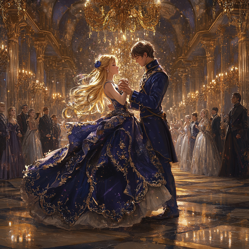 黄金の燭光と群青の影が交わる、幻想の舞踏会。